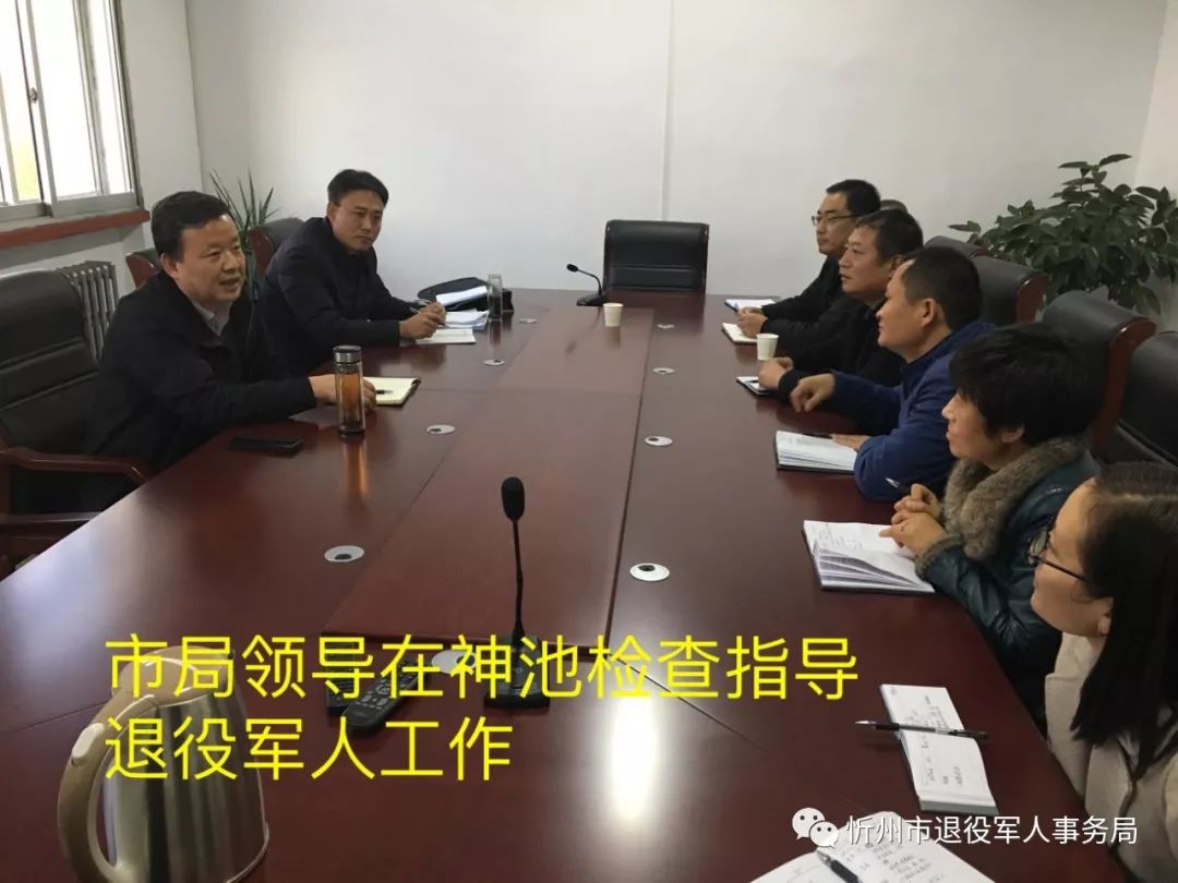 在听取神池县退役军人事务局的重点工作情况汇报后,调研组给予了充分肯定,希望下一步神池县可以在退役士兵安置、拥军优属、军休服务、权益维护、创业就业、社保接续等方面再创佳绩。