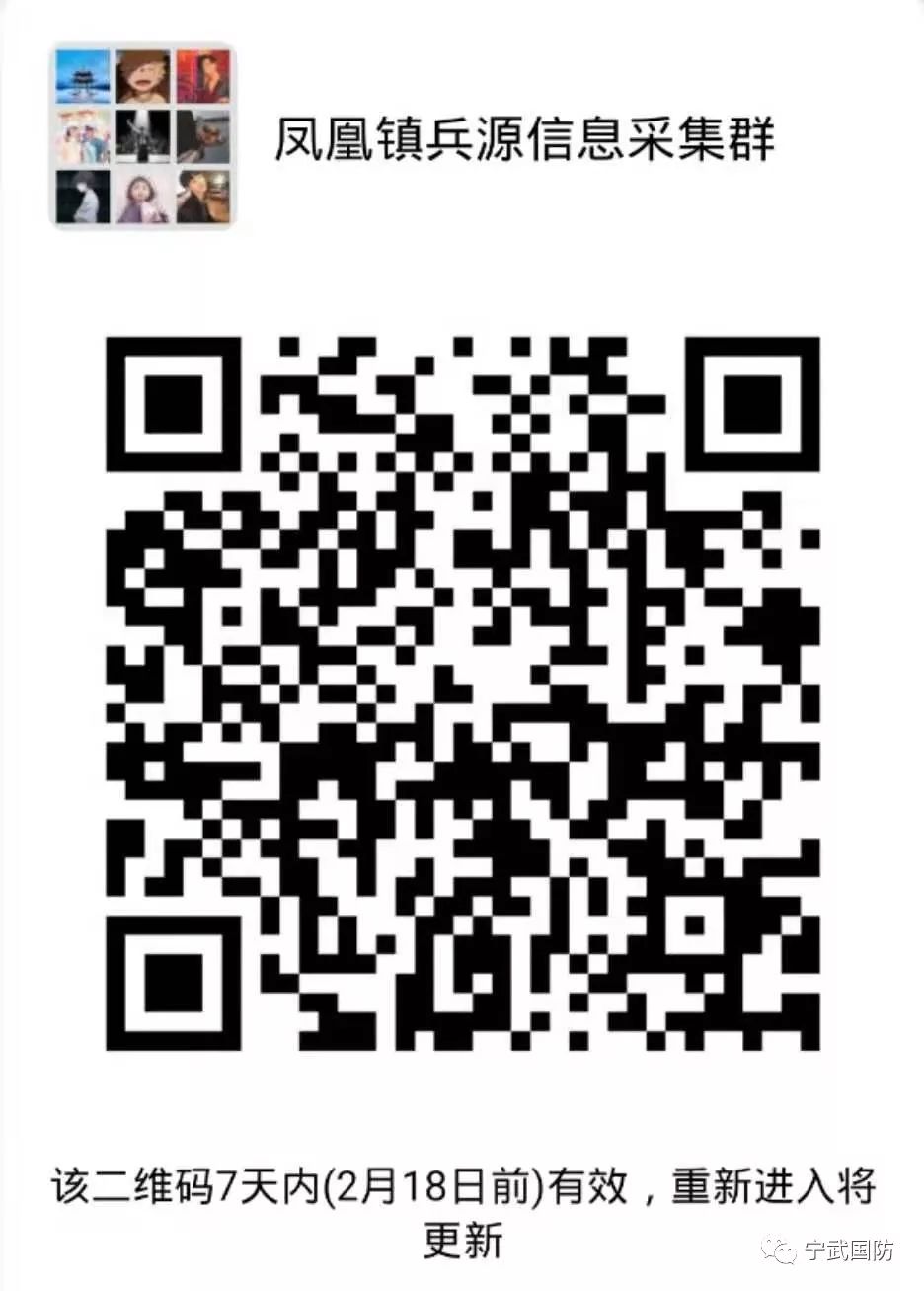 注意:年满18周岁男青年,可用微信扫二维码进入户籍所在乡镇群,咨询相关兵役问题。