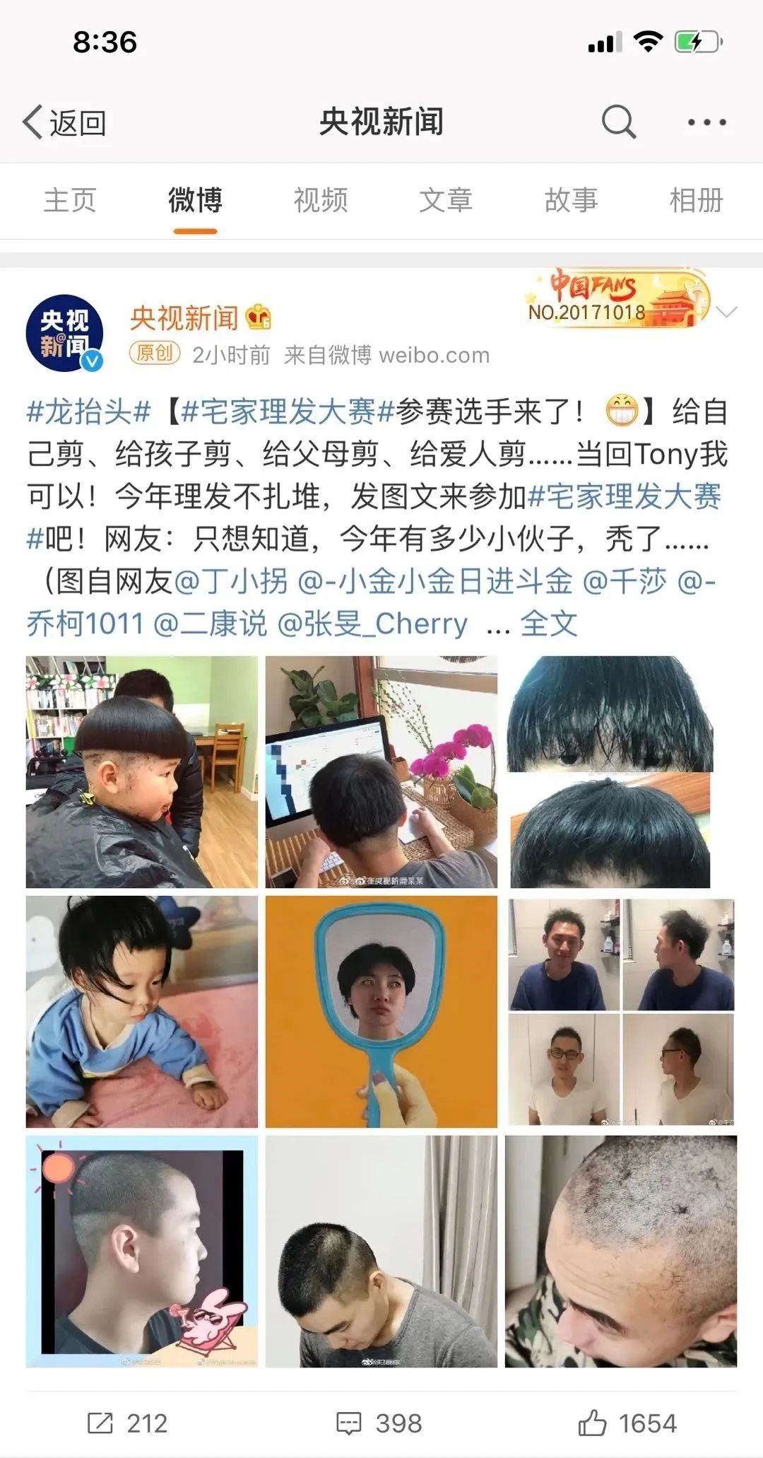 刚刚,央视新闻发起了“宅家理发大赛”,