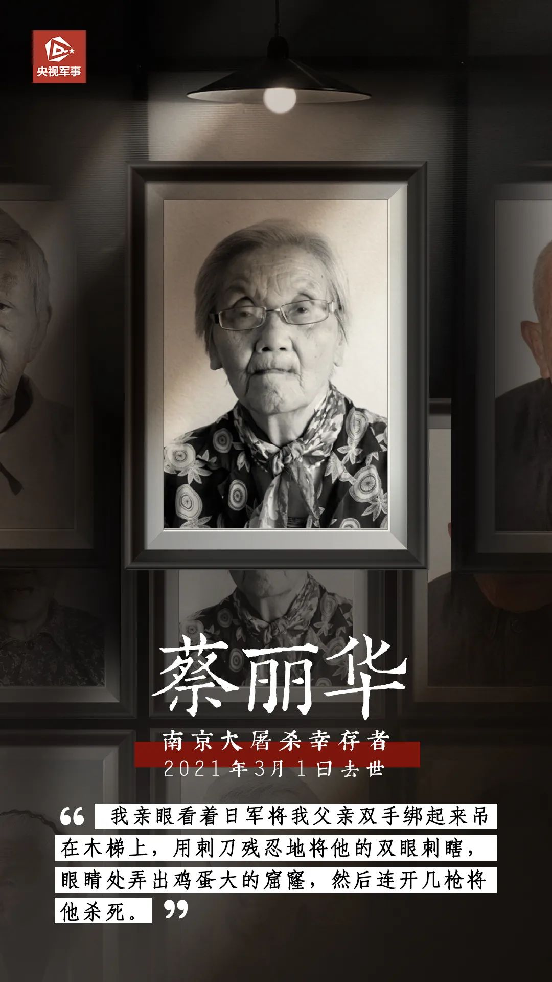 南京大屠杀幸存者蔡丽华去世