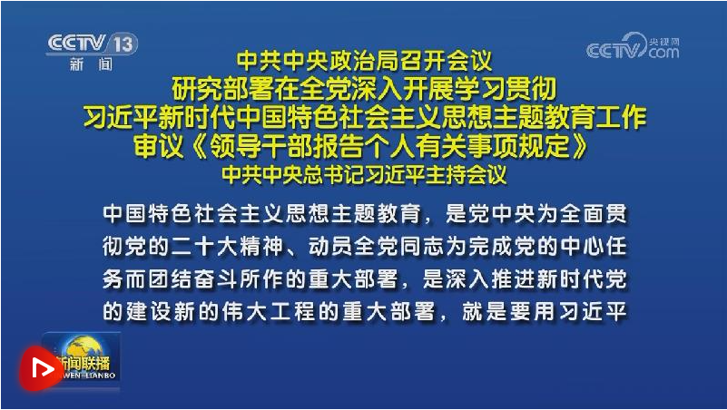 会议指出,根据党的二十大部署,以县处级以上领导干部为重点,在全党深入开展学习贯彻习近平新时代中国特色社会主义思想主题教育,用党的创新理论统一思想、统一意志、统一行动,弘扬伟大建党精神,牢记“三个务必”,推动全党为全面建设社会主义现代化国家、全面推进中华民族伟大复兴而团结奋斗。
