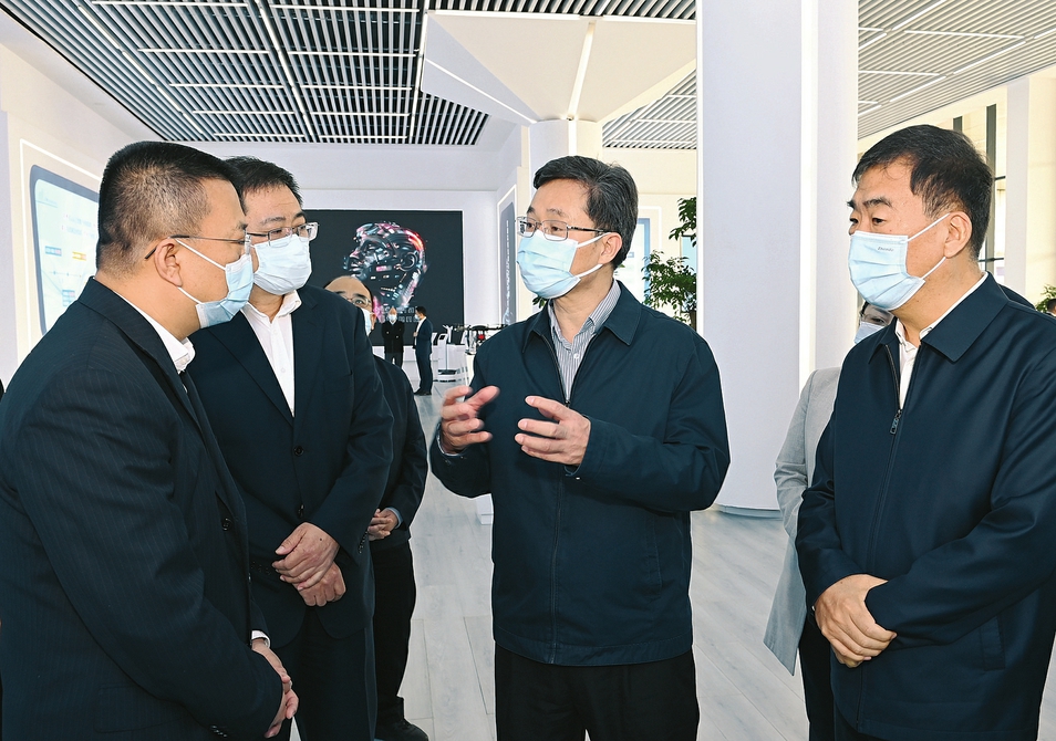 三月三十日,省委书记蓝佛安在晋城经开区听取了经开区推进产业链与创新链融合发展情况汇报。山西日报记者史晓波摄