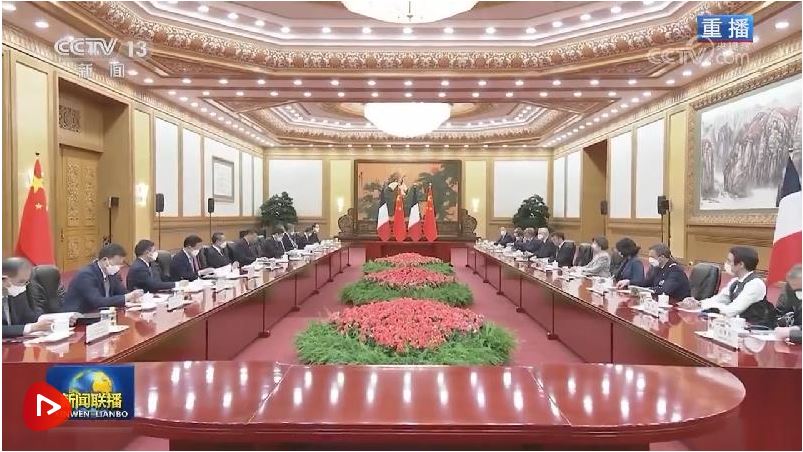 马克龙表示,我对3年多前访华情景记忆犹新,非常高兴再次访华,同习近平主席共同探讨进一步提升法中全面战略伙伴关系。我完全赞同习近平主席对法中关系的积极评价以及就发展双边关系提出的重要建议。明年法中将共同庆祝建交60周年。60年来,法中关系保持了稳定健康发展。虽然法中两国发展模式不同,但双方相互尊重,坦诚交流,各领域合作实现了互利互惠,同时在合作应对当今世界面临的全球性挑战方面取得重要进展。法方尊重并奉行一个中国政策。我此次率庞大代表团访华,就是希望同中方加强合作,促进人文交流。法方祝贺中方成功举办昆明-蒙特利尔《生物多样性公约》第十五次缔约方大会,希望继续在气候变化、粮食安全等问题上同中方密切沟通合作。中方将举办第三届“一带一路”国际合作高峰论坛,法方愿同中方就此开展合作。法方赞赏中方始终遵守联合国宪章宗旨,为解决国际地区热点问题发挥积极作用,期待同中方密切沟通协作,努力实现世界的持久和平与稳定。