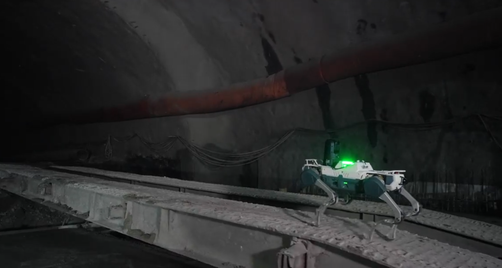 一条机器狗正在施工中的高速公路隧道里巡检。 山西交控路桥集团 供图