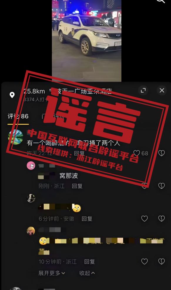 辟谣:“宁波天一广场有醉酒人员持刀捅两人”系谣言