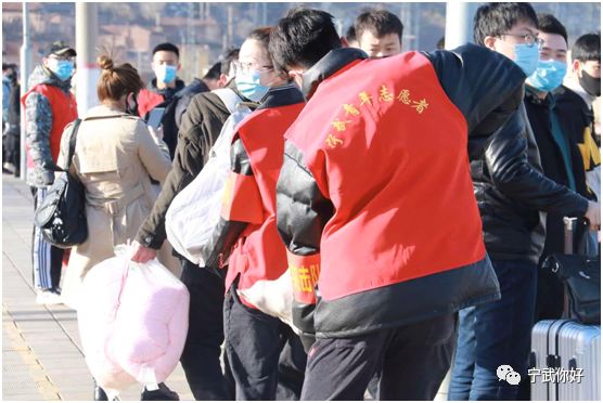随后,志愿者走上月台,积极为旅客搬运重物,引导旅客和复工人员安全乘车。
