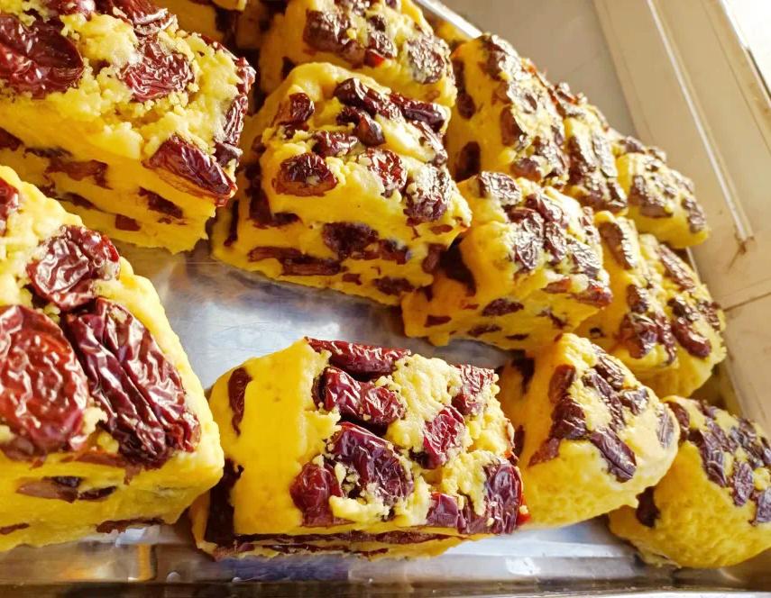 当地村民选用自家种植的黍米面和大枣等食材,通过搓面、铺枣、撒面等程序蒸制年糕。手工制作的年糕颜色金黄、软糯香甜,街头巷尾飘着阵阵糕香,给冬日的乡村添了浓浓的暖意,吃上一口“年味”扑面而来。