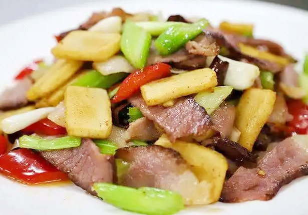 年糕,各地的做法都不一样,湖北人做年糕也有自己的讲究,把年糕切成0.3厘米厚的年糕片,油锅烧到八成热,把腊肉片炒一下,再加年糕片、大蒜等作料,炒出来颜色好看,腊味十足,就是自家最熟悉的那道年味儿。