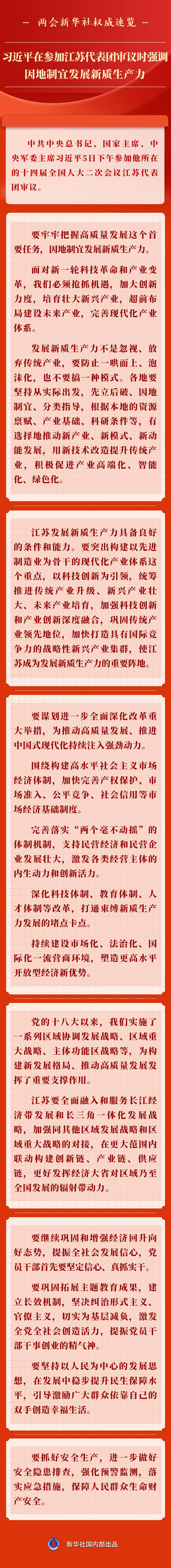 两会新华社权威速览丨习近平在参加江苏代表团审议时强调 因地制宜发展新质生产力