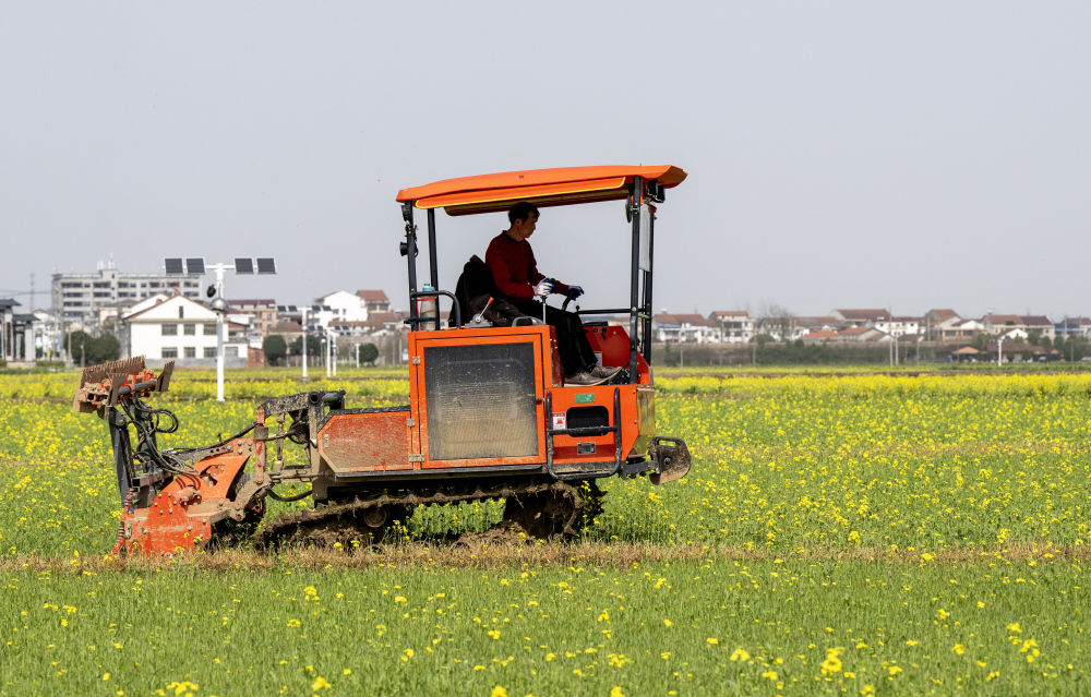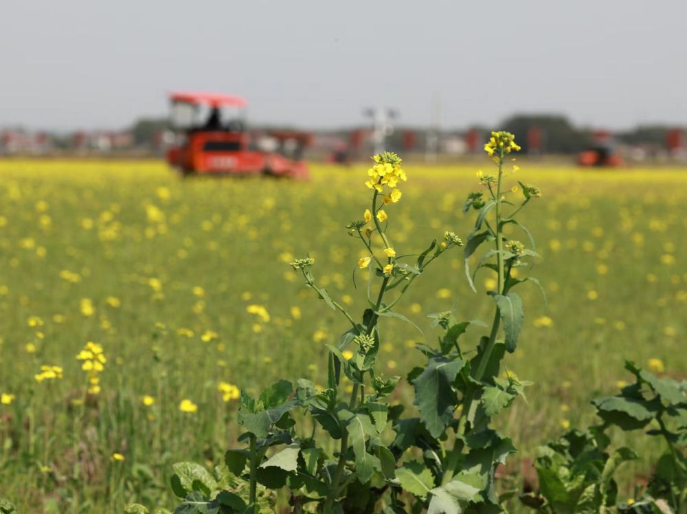 在谢家铺镇港中坪村,一片片黄绿交织的油菜花海中,一台台旋耕机在田间来回作业,将油菜和紫云英翻耕进土中,沤成肥料。这里的油菜并非榨油的食用油菜,而是村民用来给土壤和水稻调节营养的绿肥,可以增加土壤有机质。