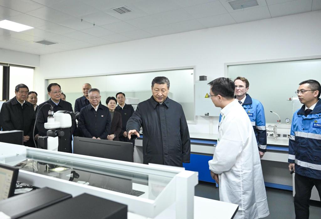 △3月18日,正在湖南长沙考察的习近平总书记来到巴斯夫杉杉电池材料有限公司,听取当地加快发展新质生产力、扩大高水平对外开放等情况介绍,察看企业产品展示,了解材料性能测试情况和电池生产流程。