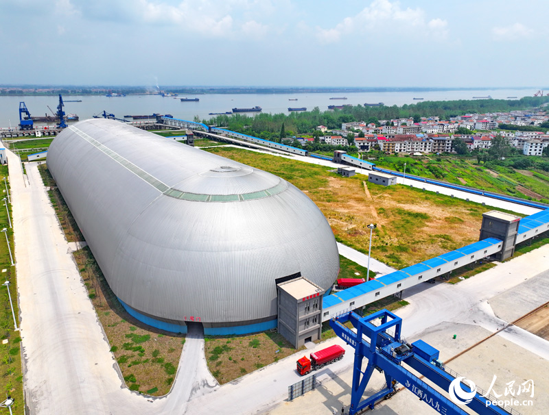 位于九江柴桑区的九江港赤湖作业区公用码头的“胶囊”仓库,是全国第二个、江西首个新型智慧散货码头。人民网 朱海鹏摄