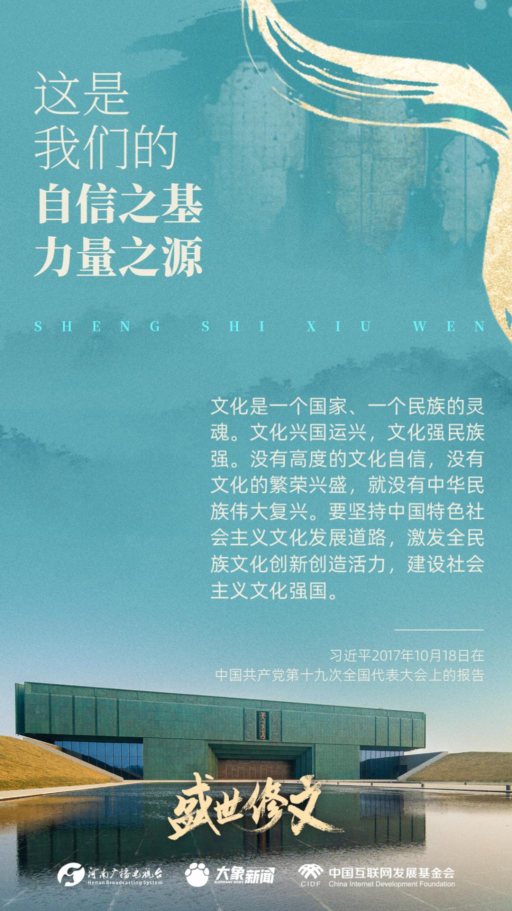 今天推出:习近平文化思想金句之《盛世修文|这是我们的自信之基、力量之源》。