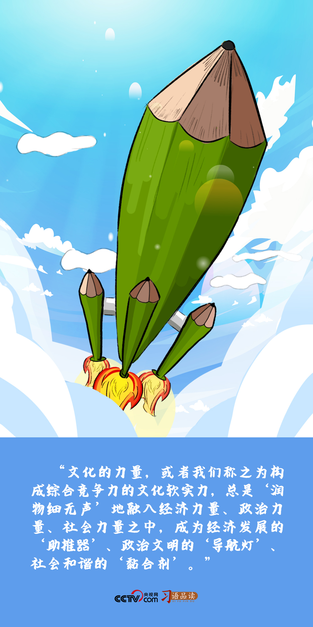 2005年8月12日,时任浙江省委书记的习近平在《浙江日报》“之江新语”专栏中写道:“文化的力量,或者我们称之为构成综合竞争力的文化软实力,总是‘润物细无声’地融入经济力量、政治力量、社会力量之中,成为经济发展的‘助推器’、政治文明的‘导航灯’、社会和谐的‘黏合剂’。”