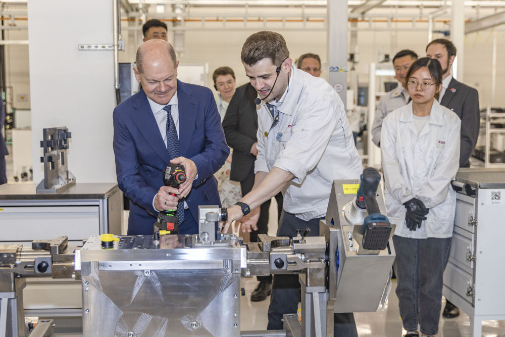 4月14日,德国总理朔尔茨在位于重庆市九龙坡区的博世氢动力系统(重庆)有限公司参访。