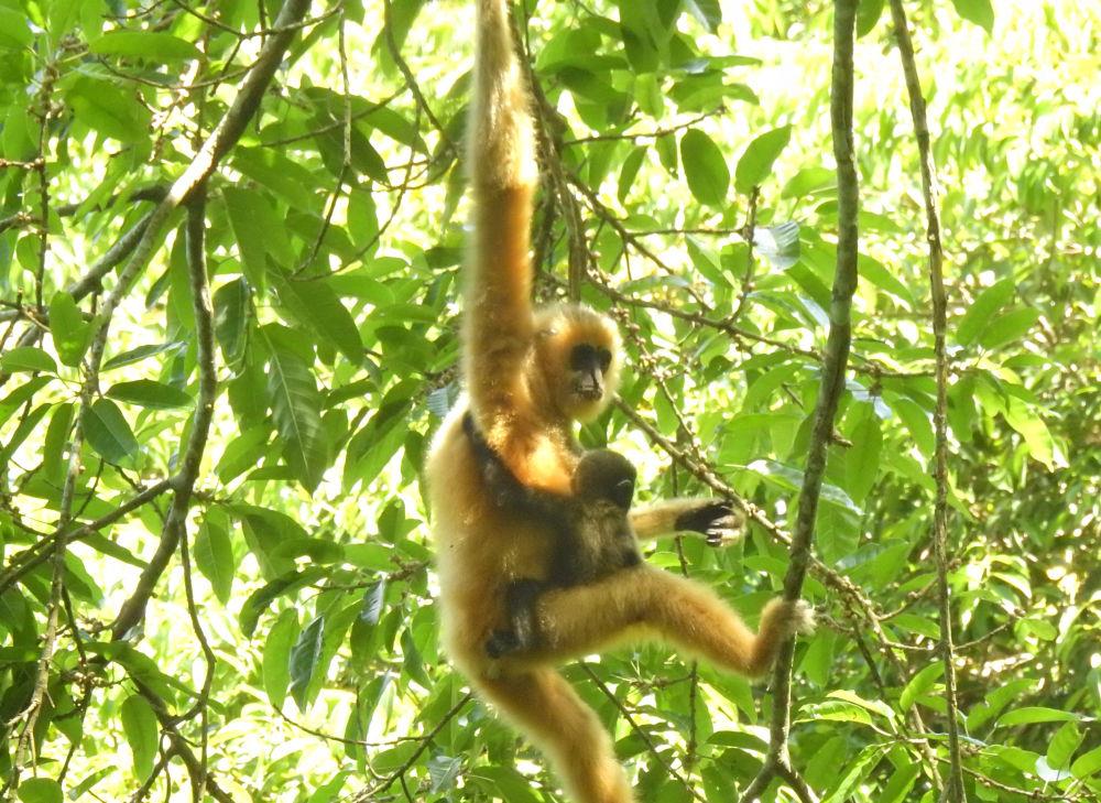 海南长臂猿是海南特有的灵长类动物,也是海南热带雨林生态系统完整性和原真性的指示物种,目前只分布在海南热带雨林国家公园霸王岭片区。漫步林间,“猿啼”“鸟鸣”入耳,巨大板根、独木成林、“空中花园”、植物“绞杀”现象,满目都是奇特景观。