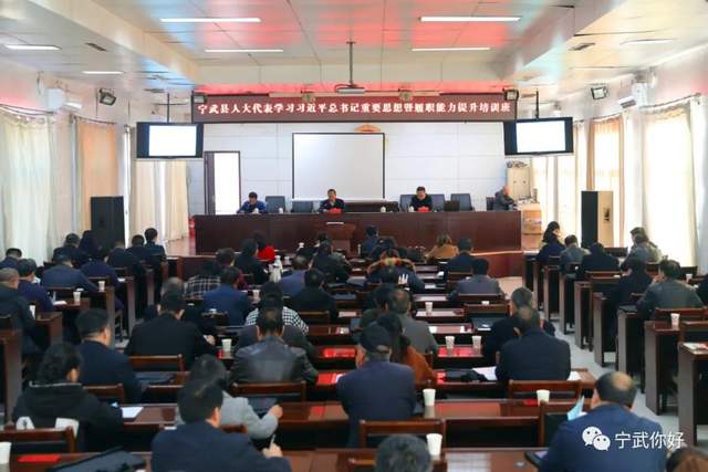 为了进一步提高代表的政治站位和理论素养,增强代表的法治理念和法律素质,提升代表的依法履职能力和水平,11月9日,由宁武县人大常委会举办的人大代表学习习近平总书记重要思想暨履职能力提升培训班在县宾馆四楼会议室正式开班。县人大常委会副主任吴永胜出席开班仪式并作动员讲话,省、市、县人大代表参加培训。