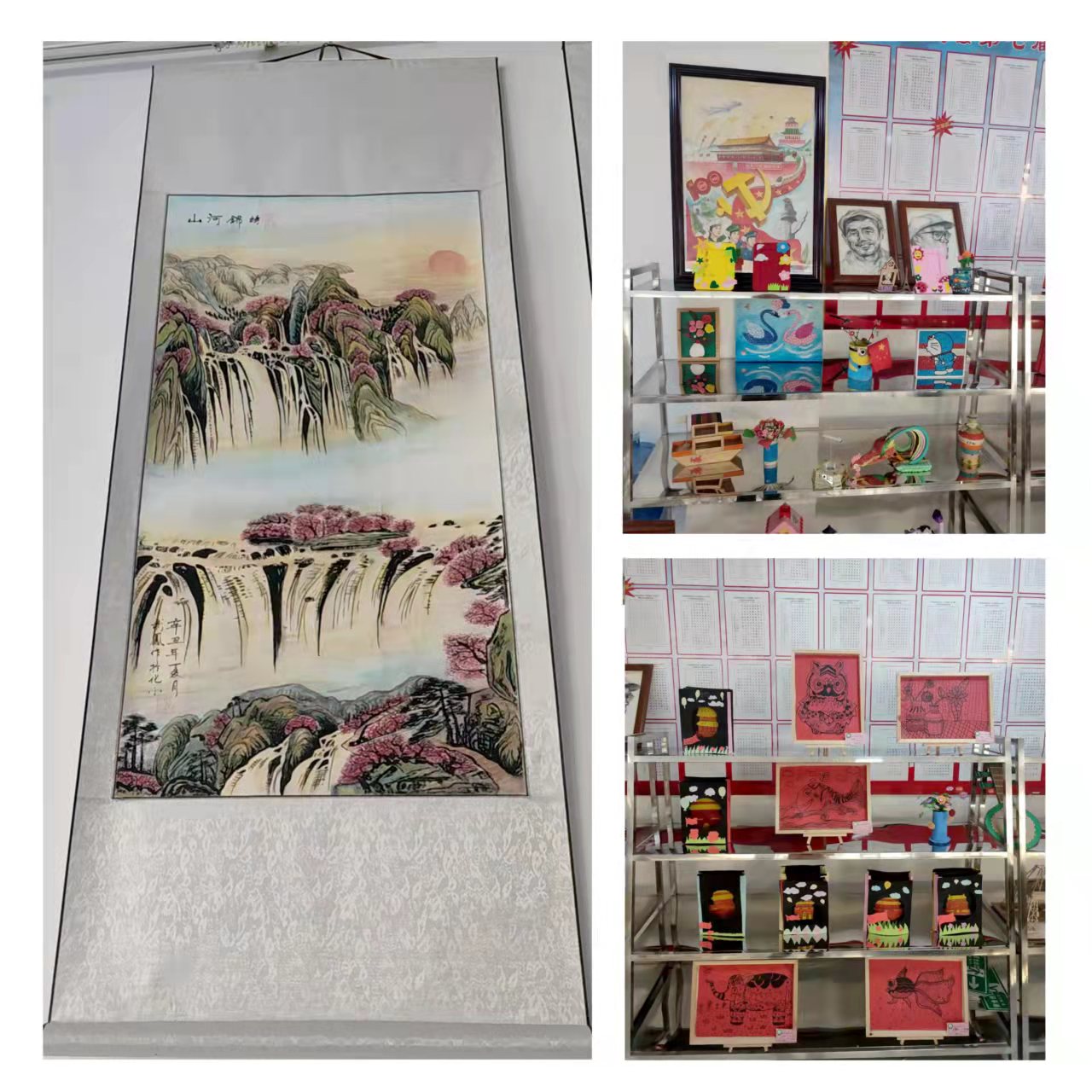 此次展览共展出小学员们100多幅水彩画、50多幅手工画、100多幅硬笔书法作品,这些作品主题鲜明、内容丰富,既具有张力又不失童趣,一把把倒悬的手工小雨伞、一幅幅独具匠心的松树盆景、一面面小草帽“网红墙”既展现了小学员们心灵手巧的灵动、天真烂漫的童真和新奇大胆的想象,又表达了他们对祖国、人民以及美好未来的热爱。