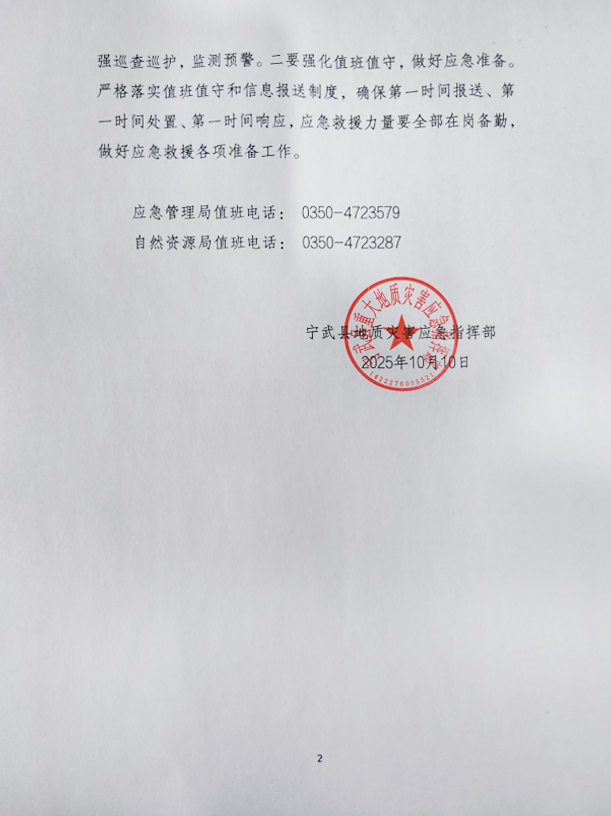 宁武县关于启动县级地质灾害四级应急响应的通知