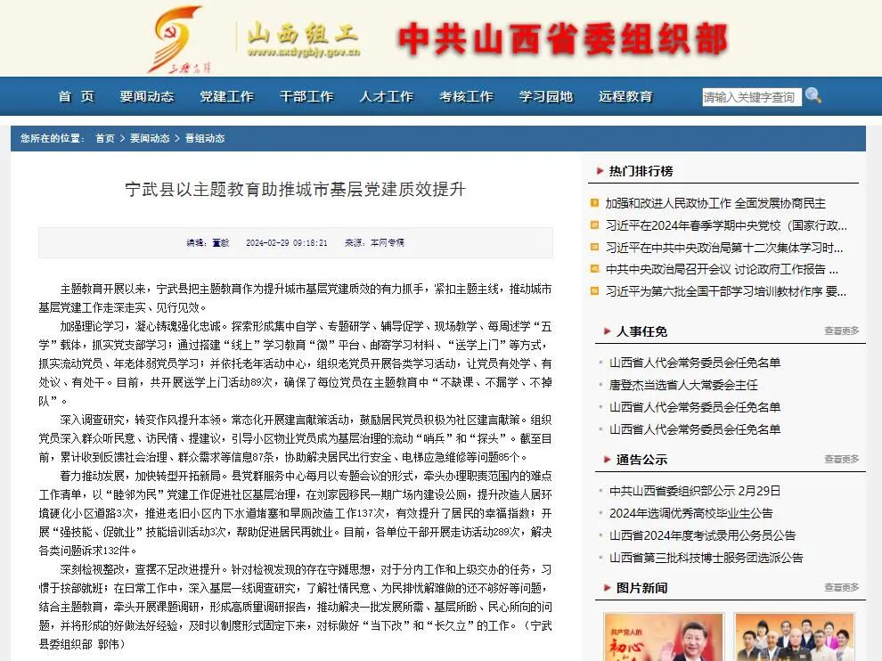 山西组工网​​丨宁武县以主题教育助推城市基层党建质效提升