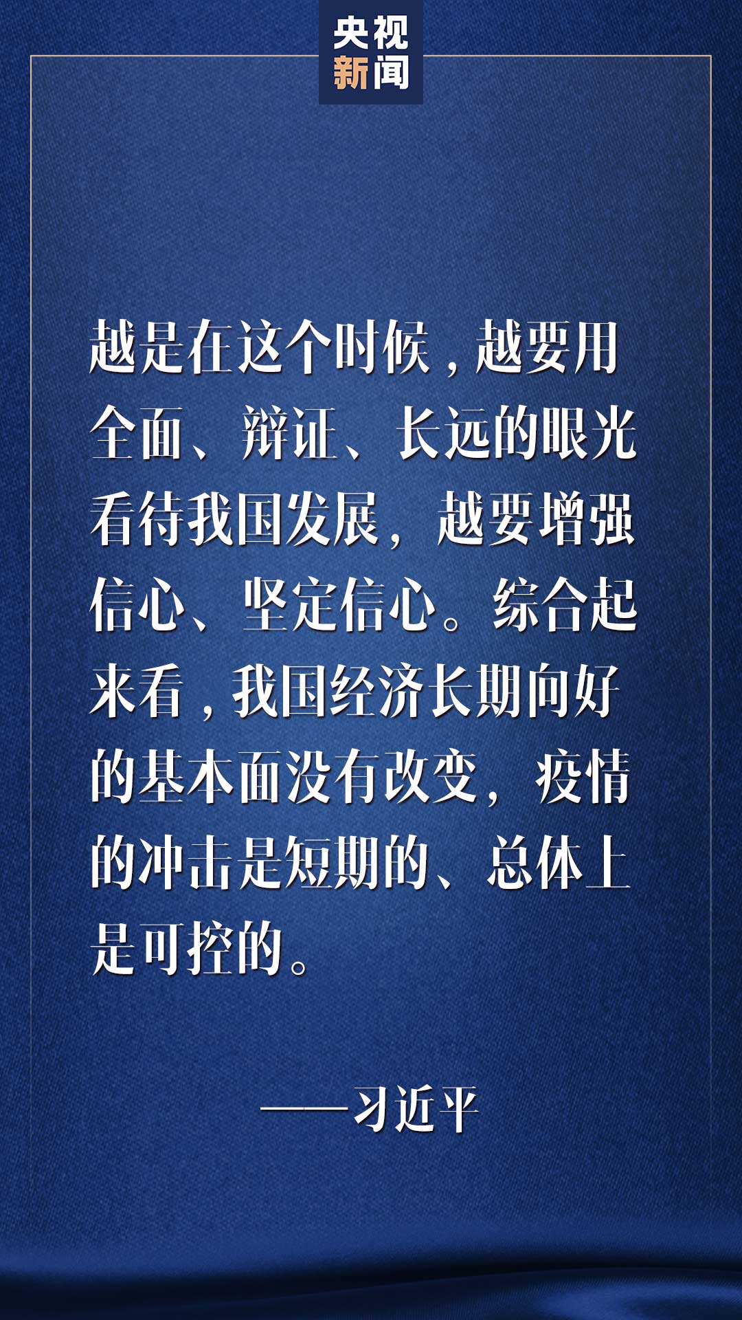 新冠肺炎疫情不可避免会对经济社会造成较大冲击。越是在这个时候,越要用全面、辩证、长远的眼光看待我国发展,越要增强信心、坚定信心。综合起来看,我国经济长期向好的基本面没有改变,疫情的冲击是短期的、总体上是可控的。