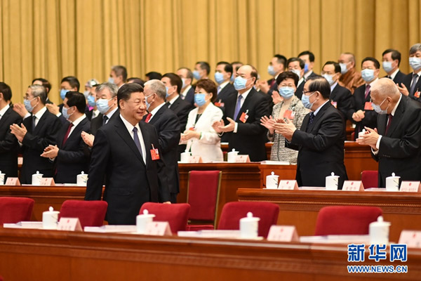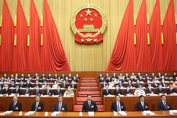 习近平、李克强、汪洋、王沪宁、赵乐际、韩正、王岐山和大会主席团成员在主席台就座。