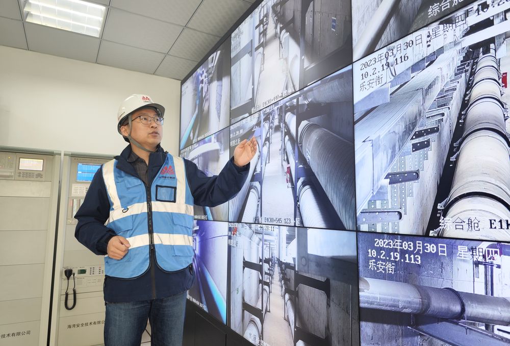 工作人员在雄安新区容东片区地下综合管廊监控室工作(2023年3月30日摄)。新华社记者 朱旭东 摄
