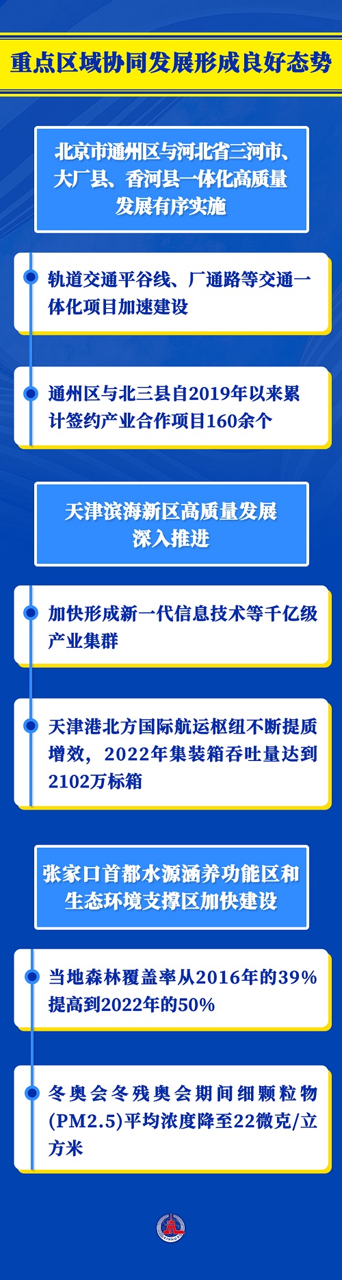 眼下,雄安新区高标准高质量推进建设,北京城市副中心高质量发展步伐加快,“两翼”联动为京津冀协同发展提供支撑。