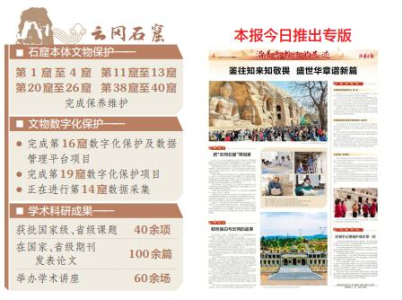 据了解,目前云冈研究院共获批国家级、省级课题40余项,申请经费2000余万元,陆续出版近十部学术专著,在国家、省级期刊发表论文100余篇,举办学术讲座60余场。其中《云冈石窟全集》被中宣部授予中国出版图书政府奖、第七届中华优秀出版物奖;《云冈石窟山顶佛教寺院遗址发掘报告》被评为“2021年度全国文化遗产优秀图书”,是“建设中国特色、中国风格、中国气派的考古学”的重大成果。