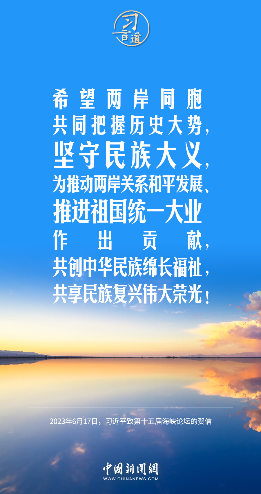6月17日,中共中央总书记、国家主席习近平向第十五届海峡论坛致贺信。习近平强调——