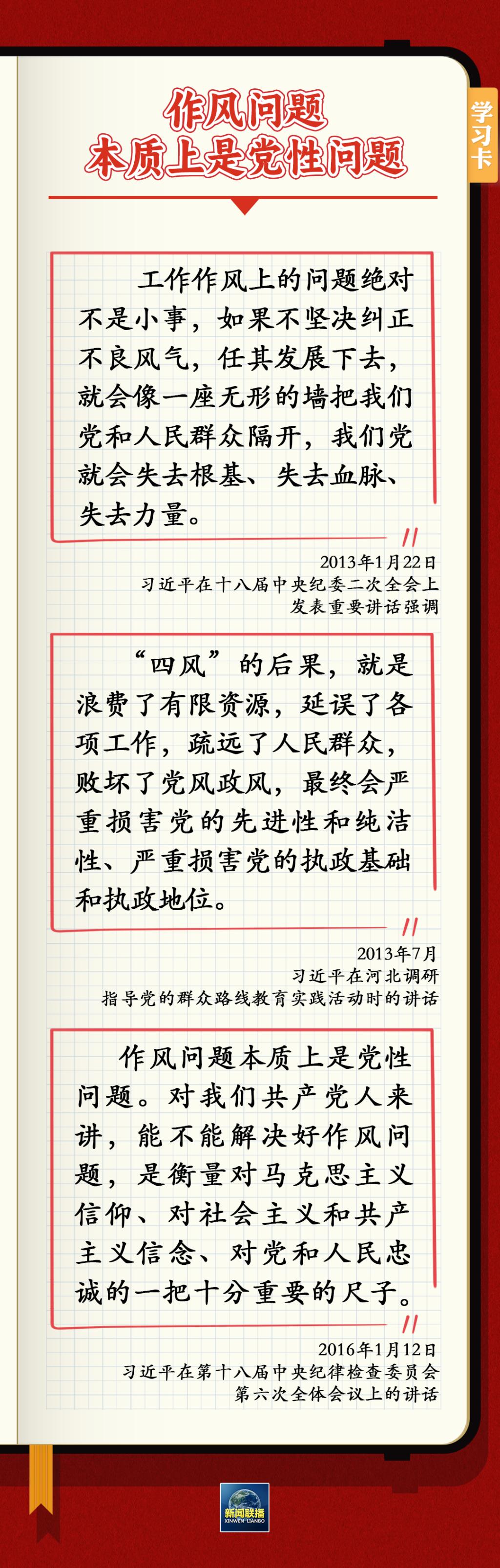 学习卡丨作风问题本质上是党性问题,纠正“四风”不能止步
