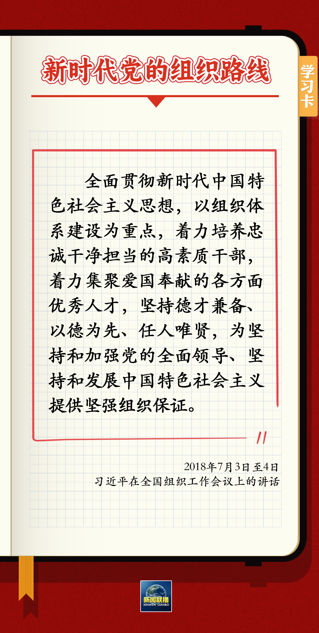 2018年7月,总书记在全国组织工作会议上提出新时代党的组织路线。多年来,总书记多次在不同场合强调要加强党的组织体系建设,贯彻落实好新时代党的组织路线。
