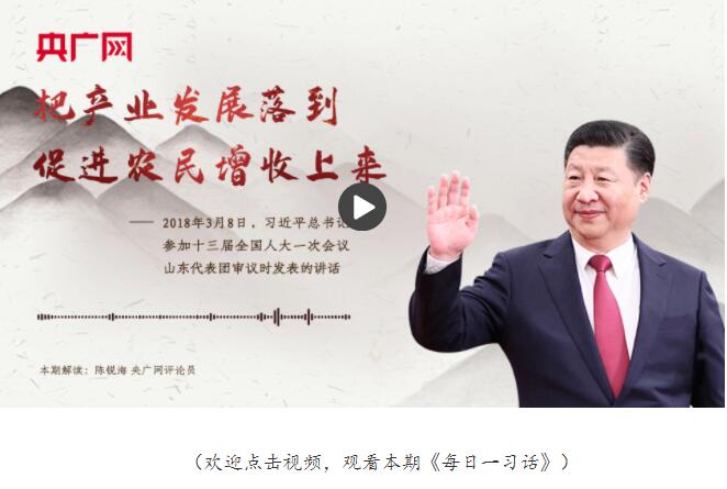 习近平:要推动乡村产业振兴,紧紧围绕发展现代农业,围绕农村一二三产业融合发展,构建乡村产业体系,实现产业兴旺,把产业发展落到促进农民增收上来。