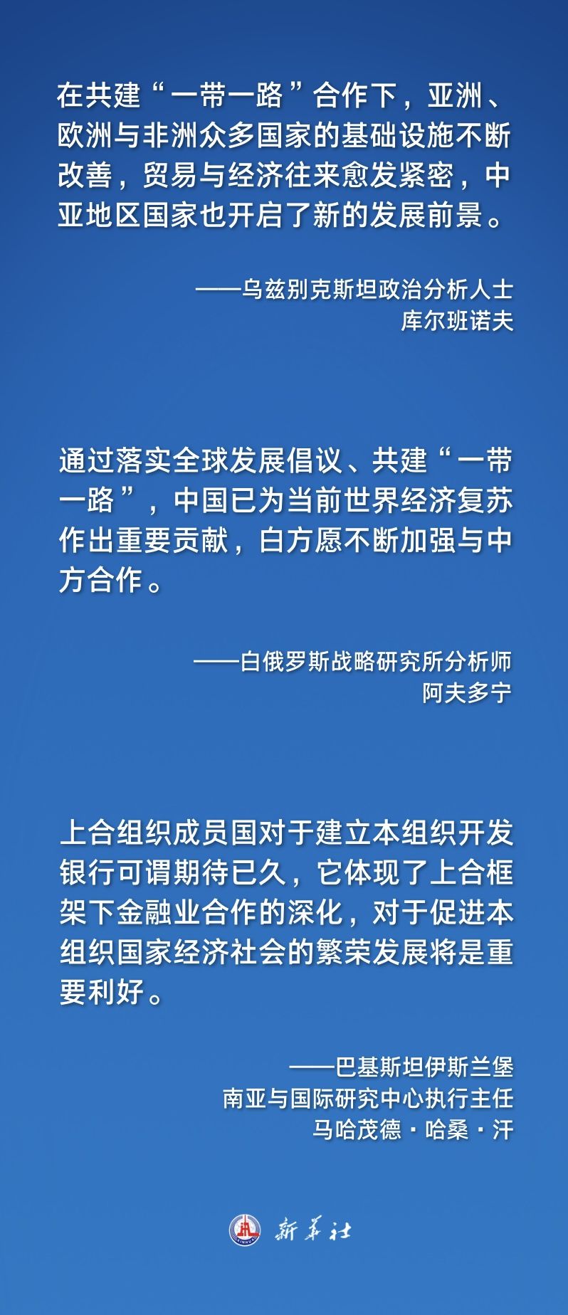 对于习近平主席提出的“扩大本组织国家本币结算份额”“建立本组织开发银行”等建议,巴基斯坦伊斯兰堡南亚与国际研究中心执行主任马哈茂德·哈桑·汗说,上合组织成员国对于建立本组织开发银行可谓期待已久,它体现了上合框架下金融业合作的深化,对于促进本组织国家经济社会的繁荣发展将是重要利好。