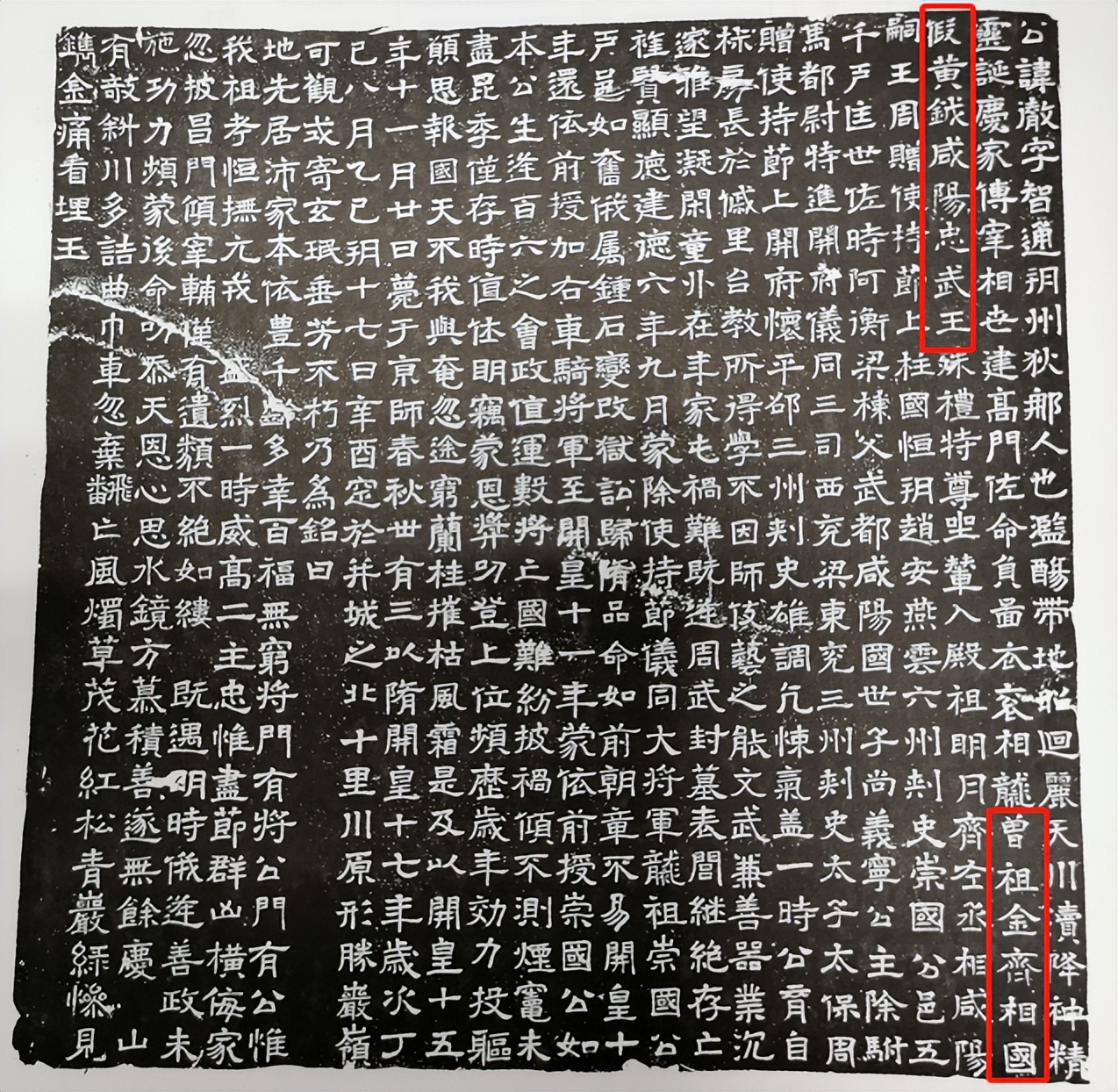 △斛律彻墓志拓片上关于斛律金的介绍:“曾祖金齐相国假黄钺咸阳忠武王……”