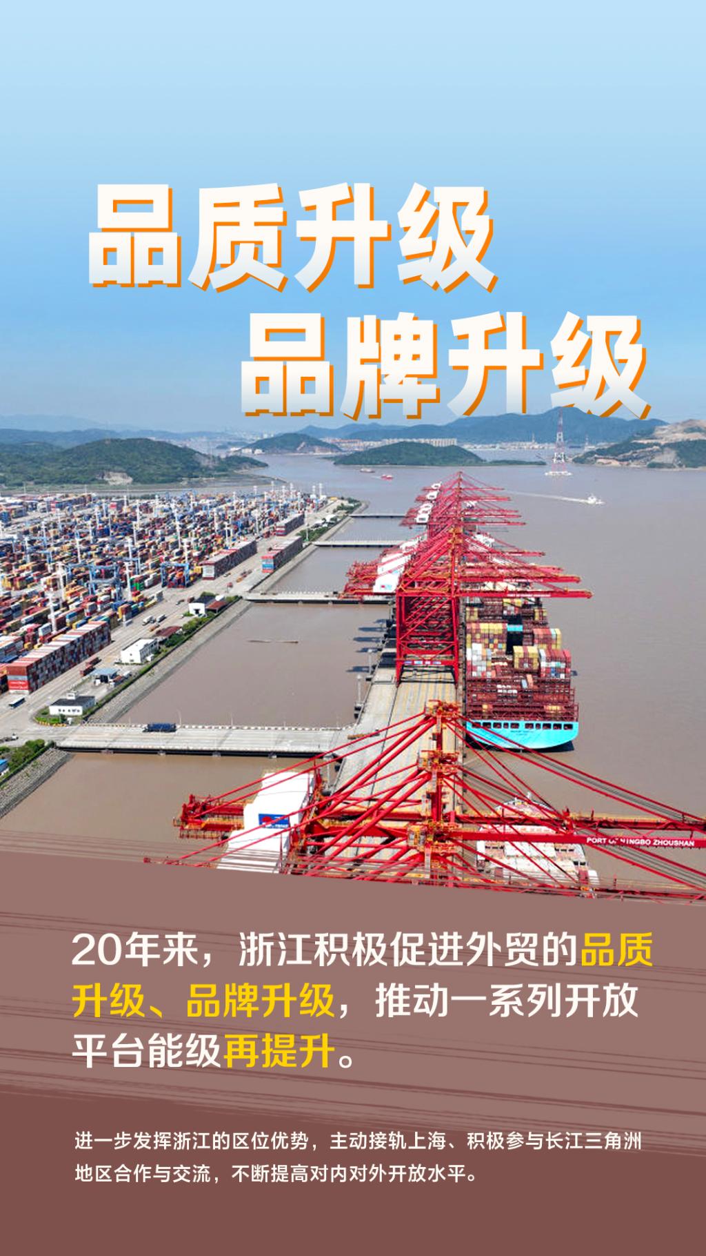 干在实处、走在前列、勇立潮头 ,今年是“八八战略”实施20周年。2003年7月,时任浙江省委书记习近平提出,要进一步发挥八个方面的优势、推进八个方面的举措,即“八八战略”,指引浙江走出改革创新开放图强之路。 20年来,浙江一张蓝图绘到底,经济社会发展取得新的历史性成就,八个方面的数据带您重温之江大地的精彩蝶变。