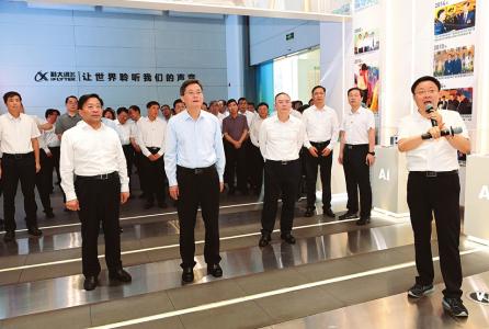7月18日,山西党政代表团在科大讯飞公司考察人工智能产品研发和行业应用落地情况。本报记者史晓波摄