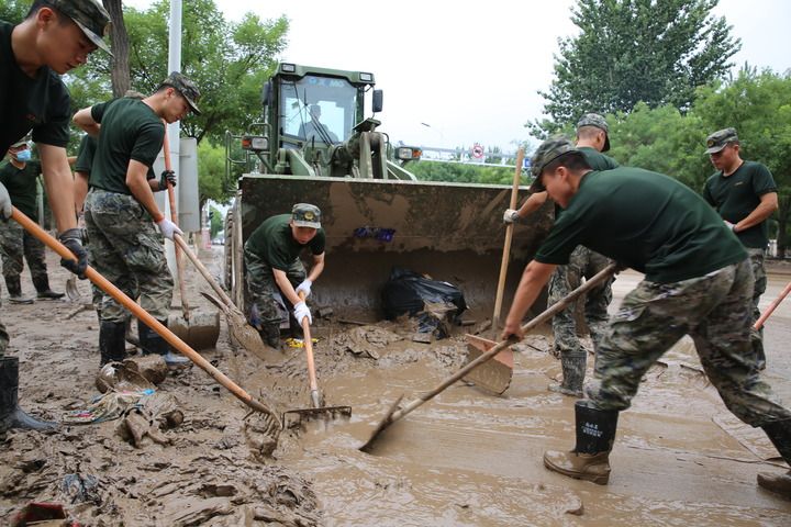 中部战区空军出动直升机勘察受灾情况,为在一片汪洋中开展救援的地面力量提供重要参考;中部战区陆军第81集团军、第82集团军多支专业救援力量抢通道路、加固岸堤;武警北京总队、河北总队官兵持续搜救失联、被困人员;河北省军区民兵分赴6地抢险救灾……