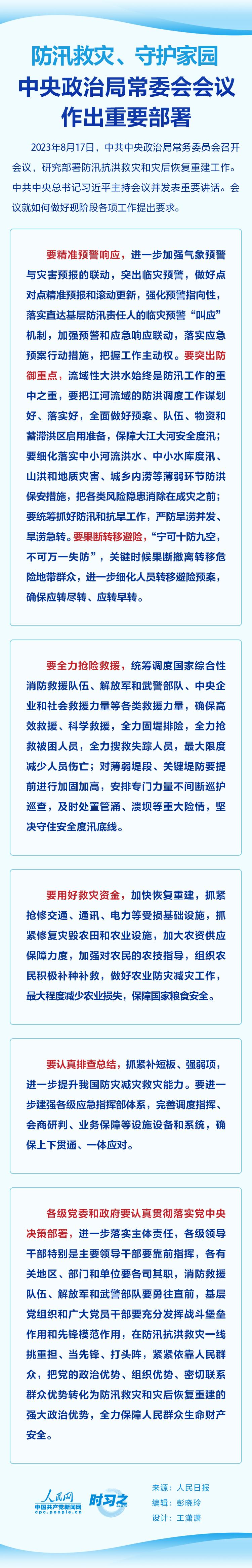 防汛救灾、守护家园 中央政治局常委会会议作出重要部署