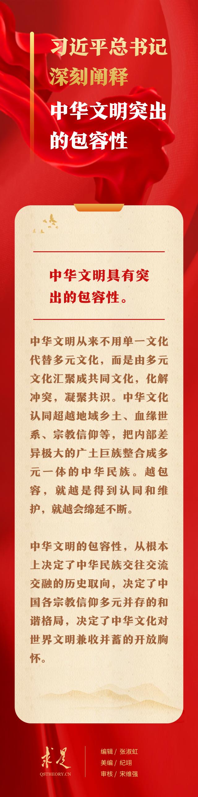 9月1日出版的第17期《求是》杂志刊发习近平总书记重要文章《在文化传承发展座谈会上的讲话》。在这篇重要文章中,总书记从中华文明具有突出的连续性、突出的创新性、突出的统一性、突出的包容性、突出的和平性5个方面,对中华文明的突出特性作出深刻阐释。