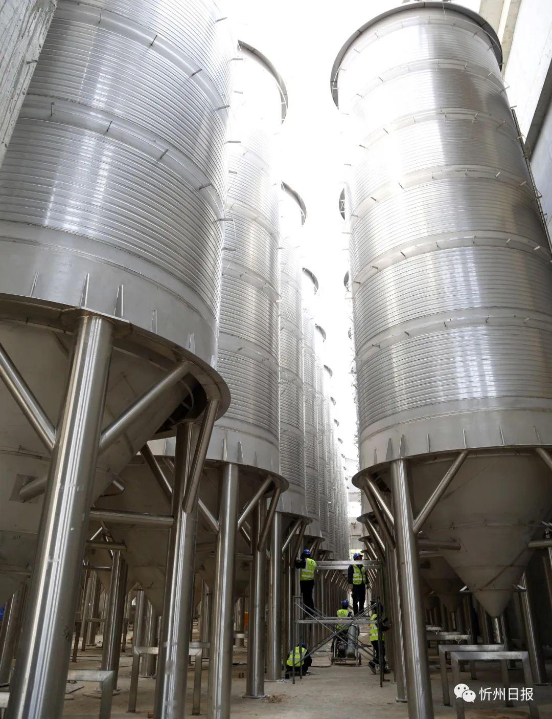 ▲正在建设中的雁门王10万吨黄酒生产线发酵车间