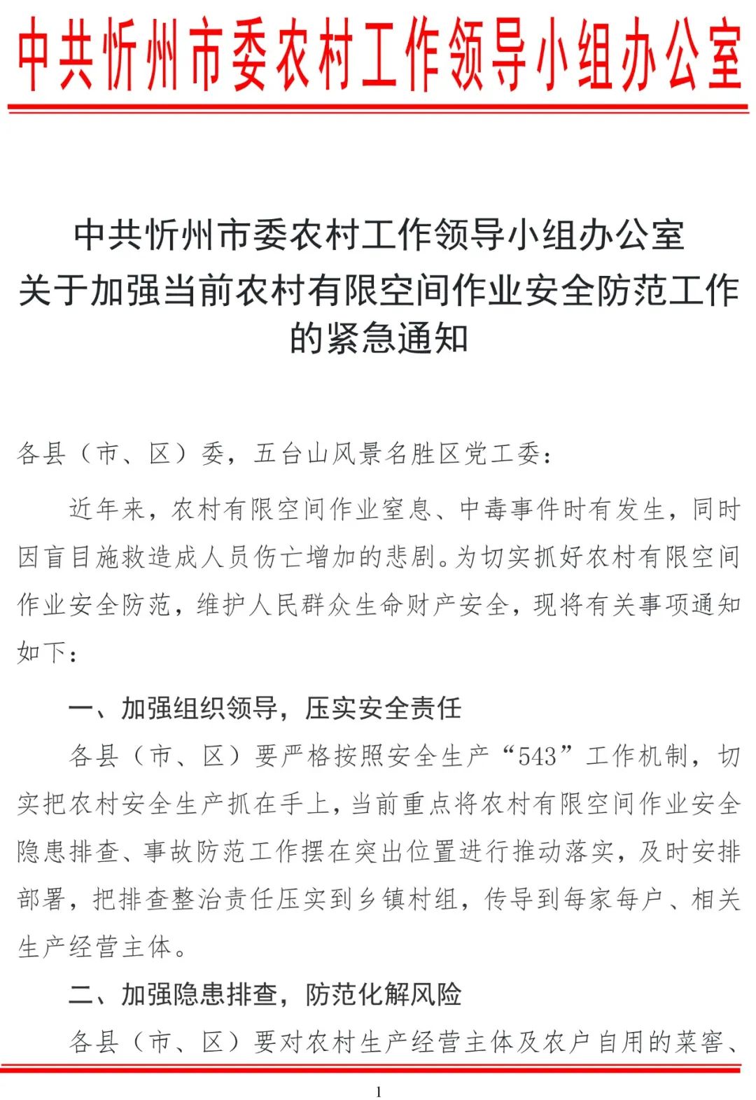 关于加强当前农村有限空间作业安全防范工作的紧急通知