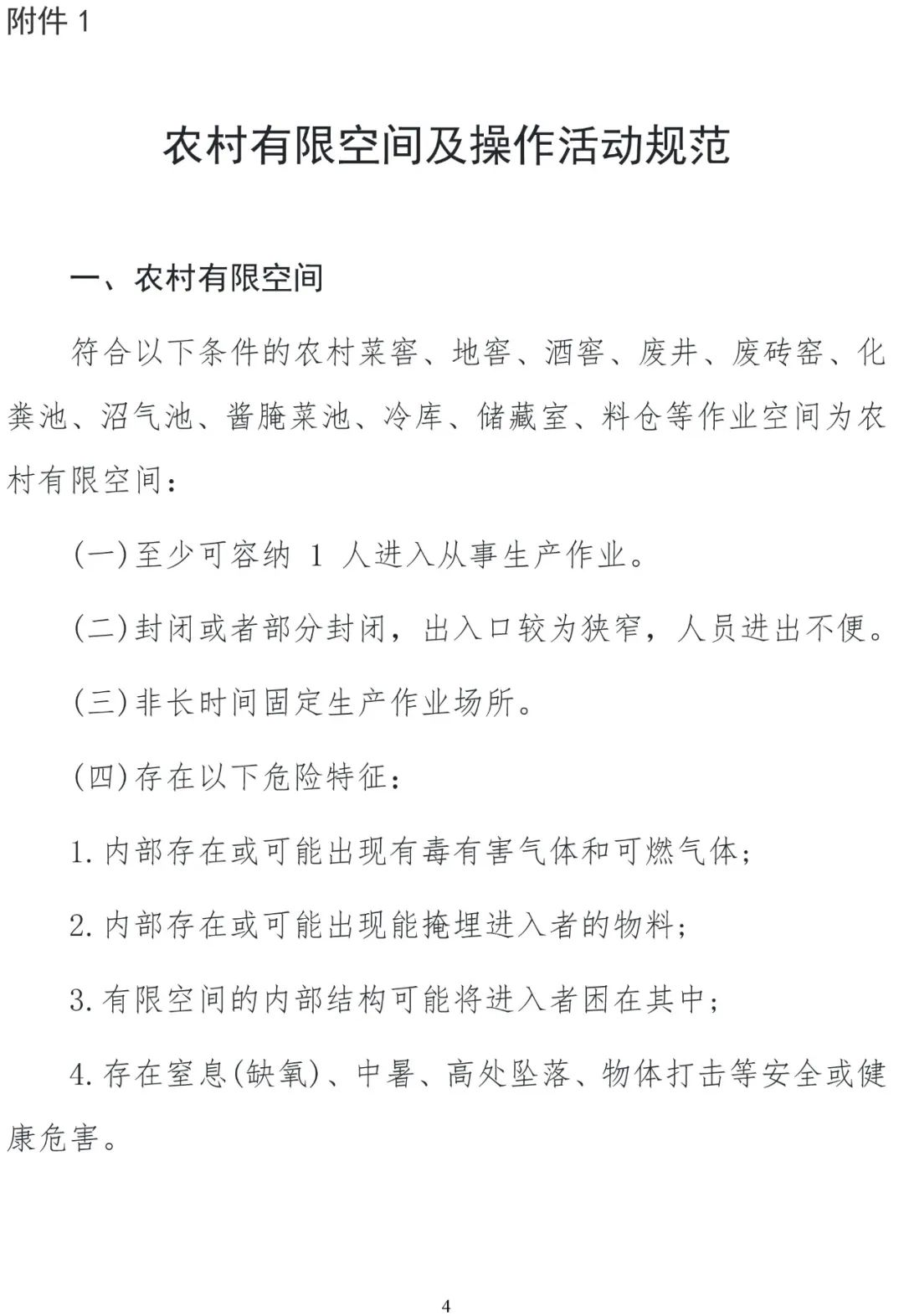 符合以下条件的农村菜窖、地窖、酒窖、废井、废砖窑、化粪池、沼气池、酱腌菜池、冷库、储藏室、料仓等作业空间为农村有限空间: