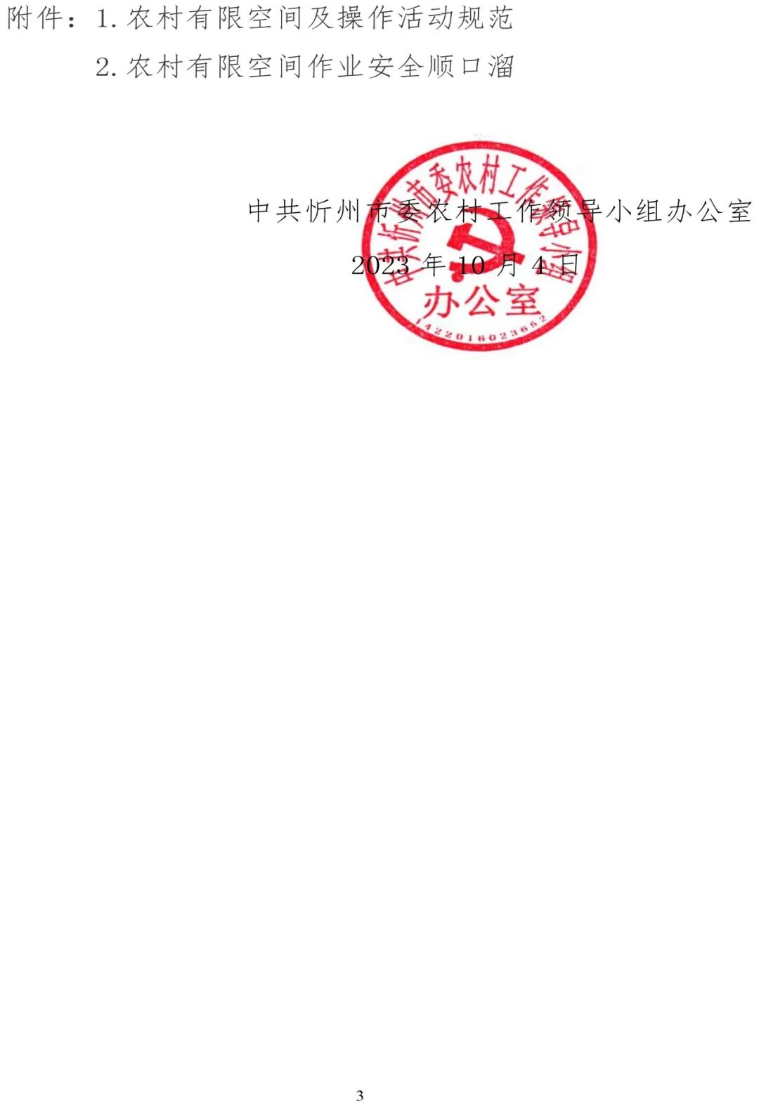 近年来,农村有限空间作业窒息、中毒事件时有发生,同时因盲目施救造成人员伤亡增加的悲剧。为切实抓好农村有限空间作业安全防范,维护人民群众生命财产安全,现将有关事项通知如下: