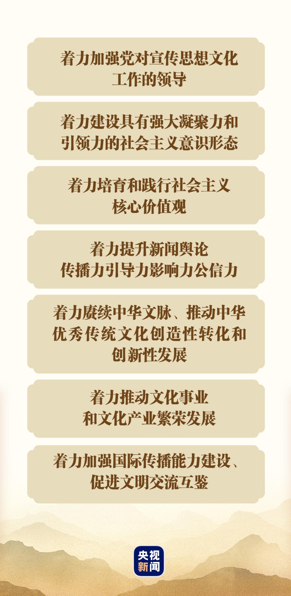 从2018年8月全国宣传思想工作会议以“九个坚持”概括宣传思想工作的规律性认识,到党的二十大从五个方面重点部署文化建设工作,再到“七个着力”的重要要求……习近平总书记对于宣传思想文化工作作出的一系列重要批示指示,既有认识论又有方法论,既有宏观层面的整体指导,又有具体层面的实践路径。
