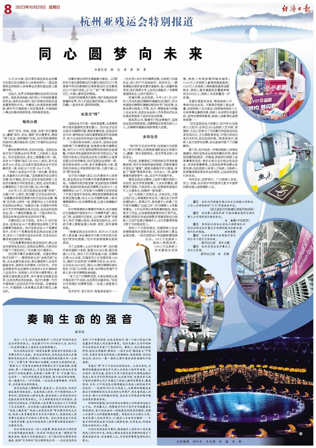 “这次亚残运会火炬接力,杭州有60名残疾人火炬手,还有近200名残疾人艺术家、表演家、文创工匠参与了开闭幕式和亚残运村各类欢迎仪式、文化展陈等活动,对他们来说这是闪光时刻,因此加倍珍惜。”杨英英表示,残疾人奋力逐梦的场景,给这座城市留下了闪耀瞬间。
