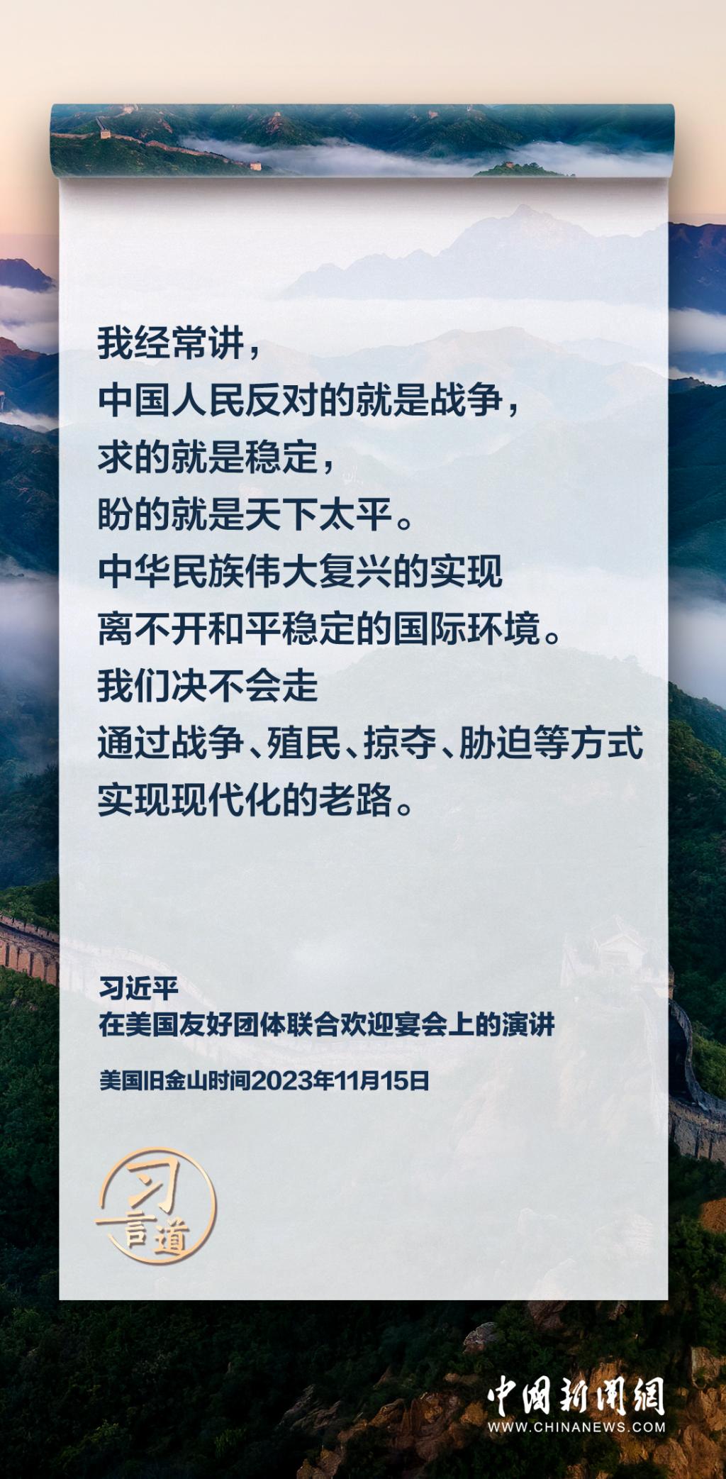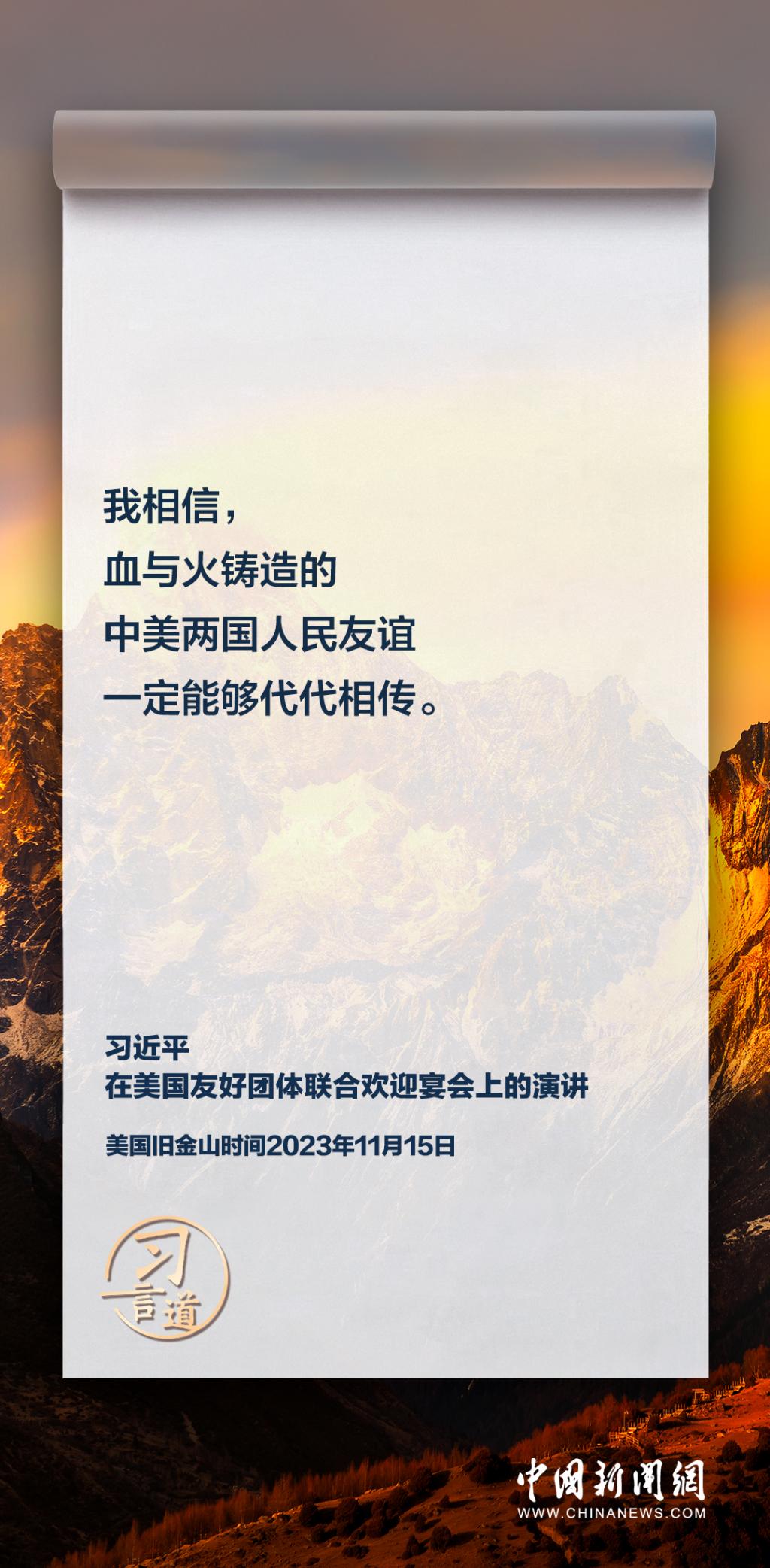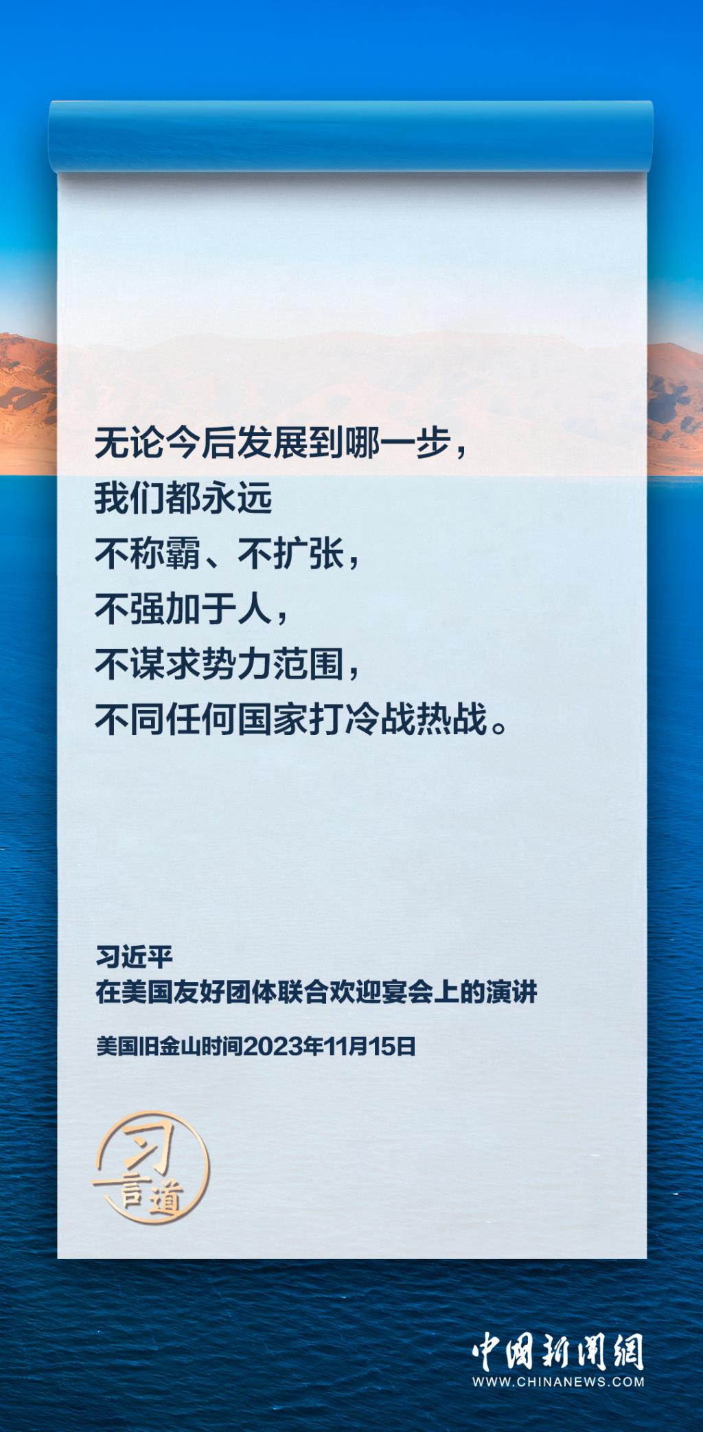 当地时间11月15日,中国国家主席习近平在美国旧金山出席美国友好团体联合欢迎宴会并发表演讲。习近平在演讲中从“我”和“我们”说起,提出中国主张、表明中国立场、展现大国担当,话语掷地有声。