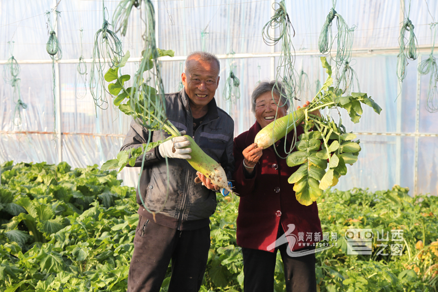 在冯南垣蔬菜大棚里,村民们向记者展示收获的蔬菜