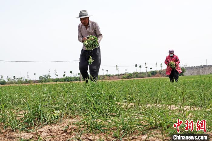 山西省运城市新绛县阳王镇北池村?,药农杨集玉(左)和家人清除中药材田间杂草。高新生摄