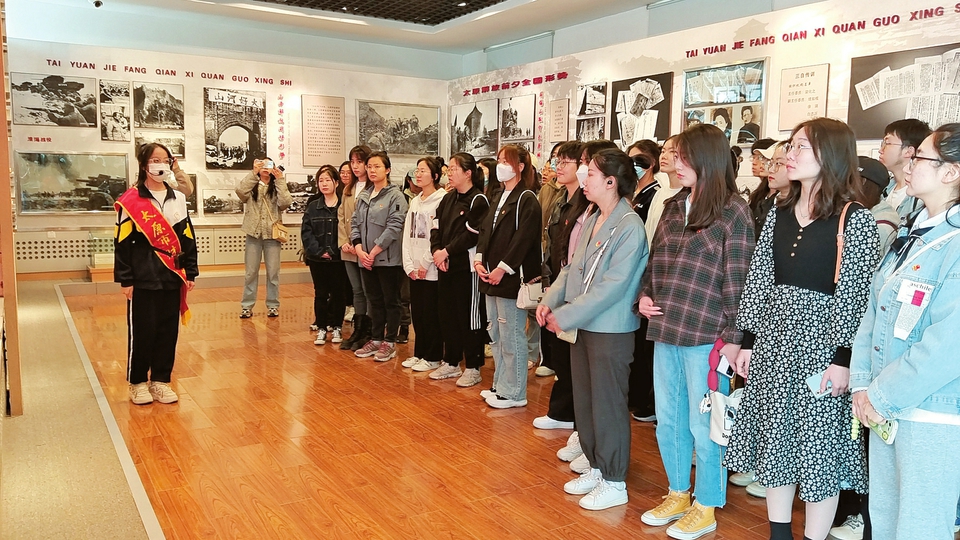 图①:太原市财贸学校学生在太原解放纪念馆开展红色志愿讲解活动。要佳 李妍摄